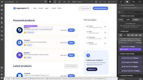 As you could see above, Aggregator X was built on Webflow using the best practices to make it very easy for you to edit the template and customize it to your needs.